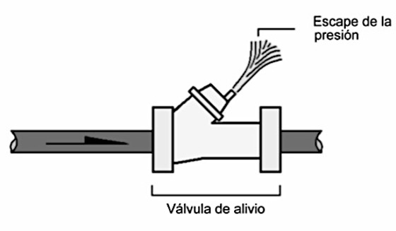 Las válvulas de alivio de presión, son dispositivos que pueden absorber variaciones repentinas de presión mediante la expulsión de agua a través de sí mismas, tienen una salida de desfogue ante el exceso de presión; esto se puede observar en la figura 7.