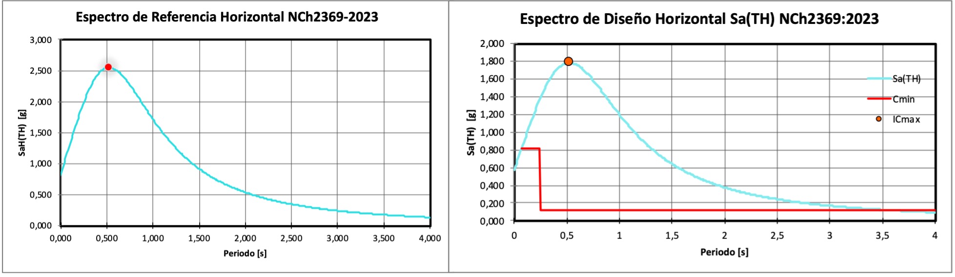 Cabe destacar que la razón de amortiguamiento incorporado en los espectros de referencia es x = 0.05, lo que implica que para razones de amortiguamiento menores es necesario ponderar el espectro correspondiente por el factor (0,05/x)0,4, siendo esta expresión válida solamente para valores de x entre 0,02 y 0,05. Para el caso del factor de amortiguamiento mayor a 0,03 se debe justificar mediante un análisis racional.